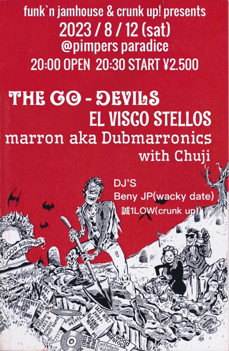 2023/8/12(sat)FUNK’N JAMHOUSE &CRUNK UP!ジョイント企画ライブ@PIMPER’S PARADICE20:00 OPEN20:30 START¥2500